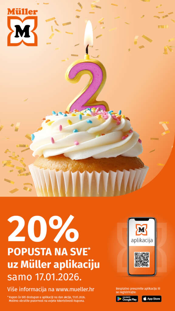 Iskoristite 20% popusta na cjelokupni asortiman* uz Müller aplikaciju!